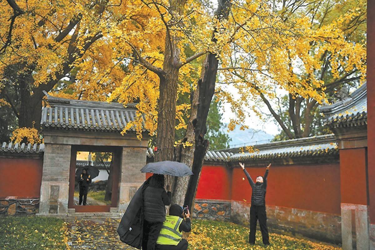 北京的秋天转瞬即逝。近期,由于气温偏暖,这份秋景意外收获了“超长待机”。在此基础上,北京多家公园开展“落叶缓扫”计划——不急于清扫落叶,让金黄的银杏叶、火红的枫叶、橙黄的白蜡叶铺满步道,为游客最大限度保留秋色,延长秋日景观的“保质期”。