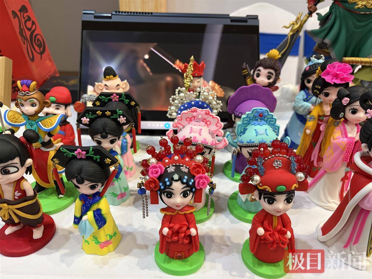 湖北省工艺美术大师、武汉面塑代表性传承人刘洁的展位前同样人头攒动。从事武汉面塑25年的他带来了屈原、昭君出塞等荆楚文化题材作品。